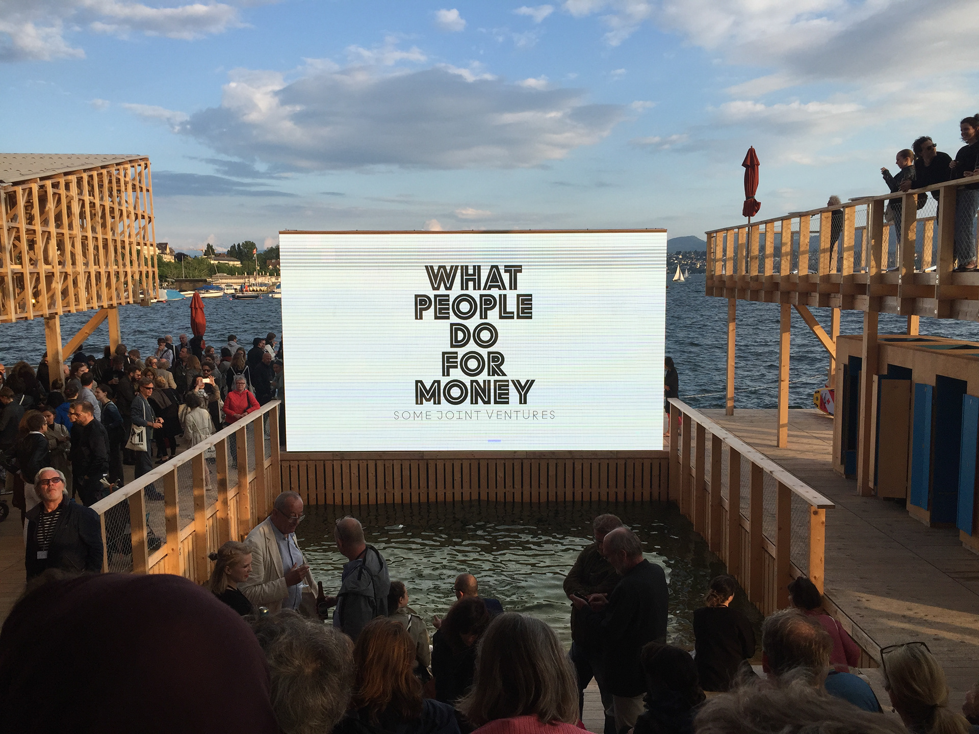 For a floating cinema erected on Lake Zurich 27 films were produced in co-operation with filmmakers and film students. Key moments of the production phases of Artists like Maurizio Cattelan or Mike Bouchet were documented and executed according to the curators dogma. I was production manager for all films and directed 4 of them myself.